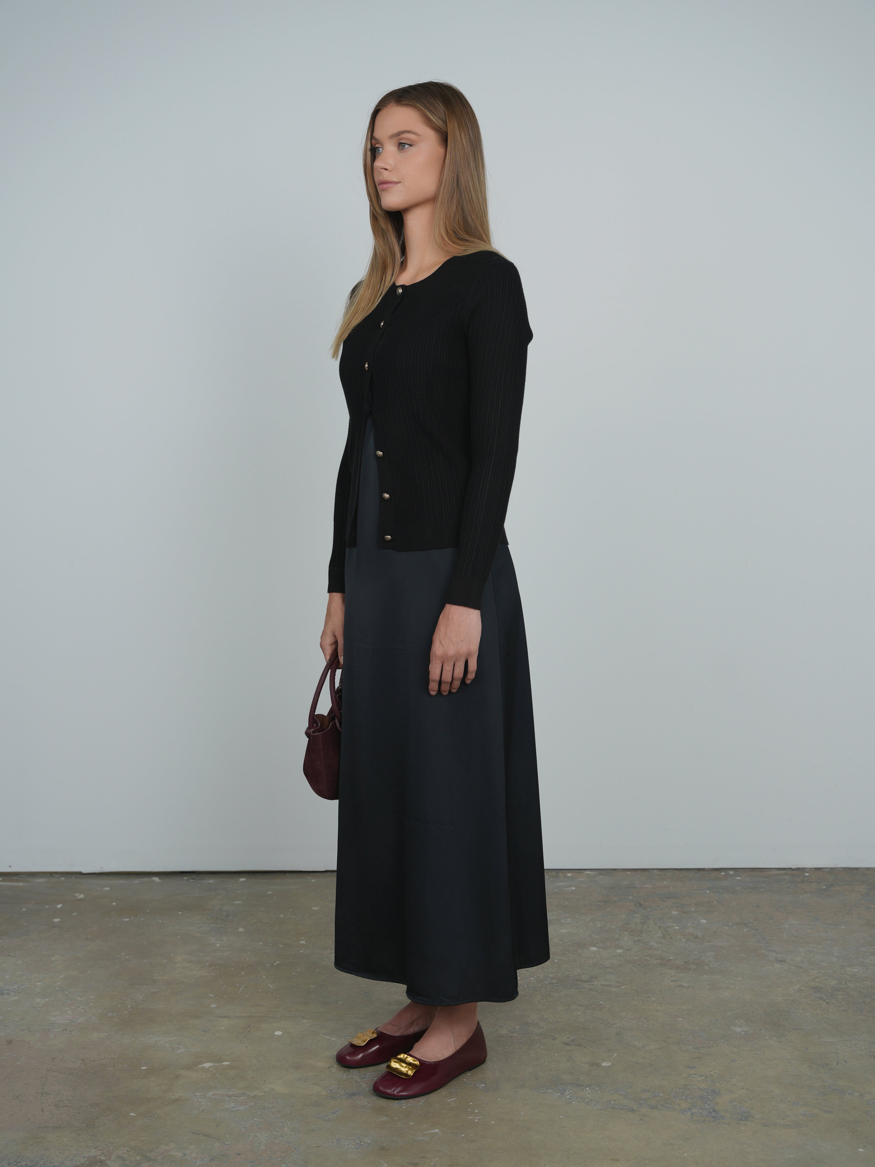 The Point Satin A-line Slip Dress is a sleek and sophisticated staple designed to flatter every silhouette. Its lustrous satin fabric catches the light with subtle sheen, while the A-line cut ensures graceful movement and comfort. Ideal for layering or wearing solo, this dress effortlessly transitions from day to night, making it a versatile addition to any fashion-forward wardrobe. Embrace timeless elegance with this understated yet striking piece.