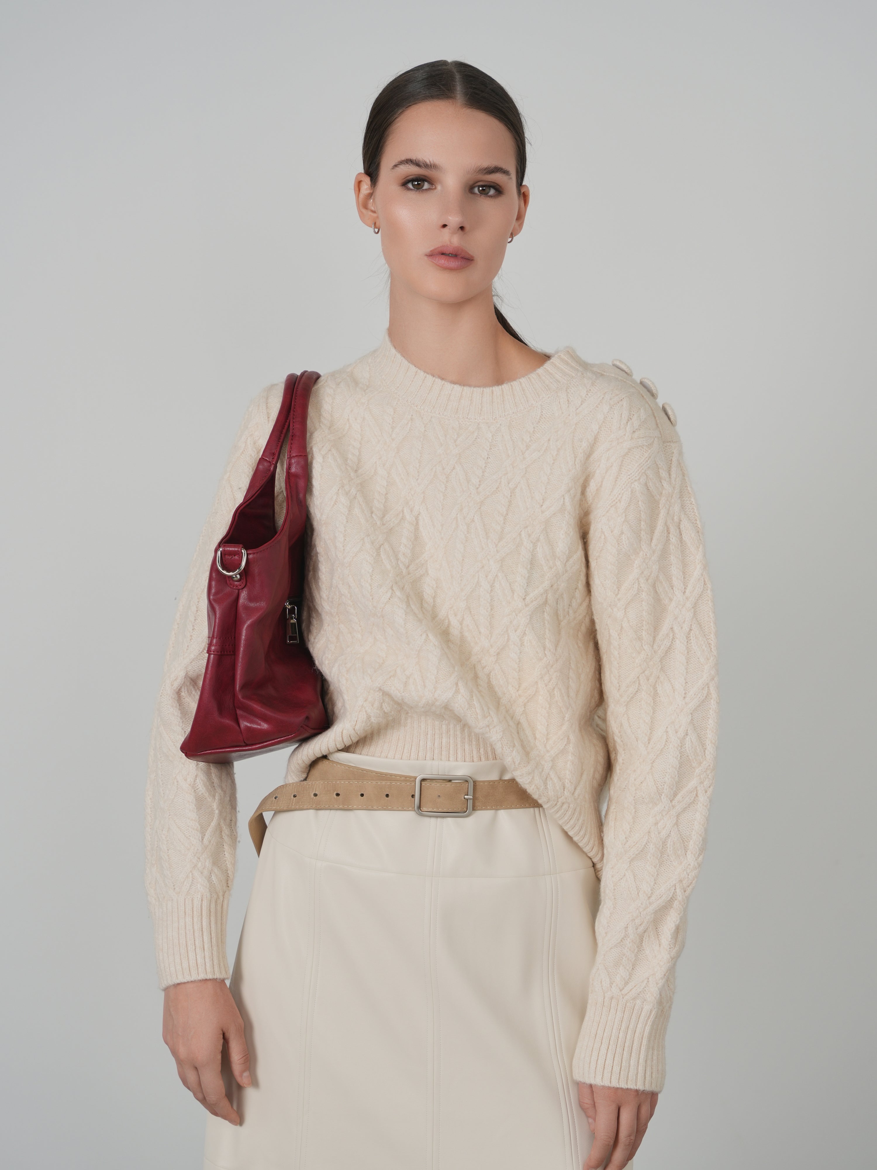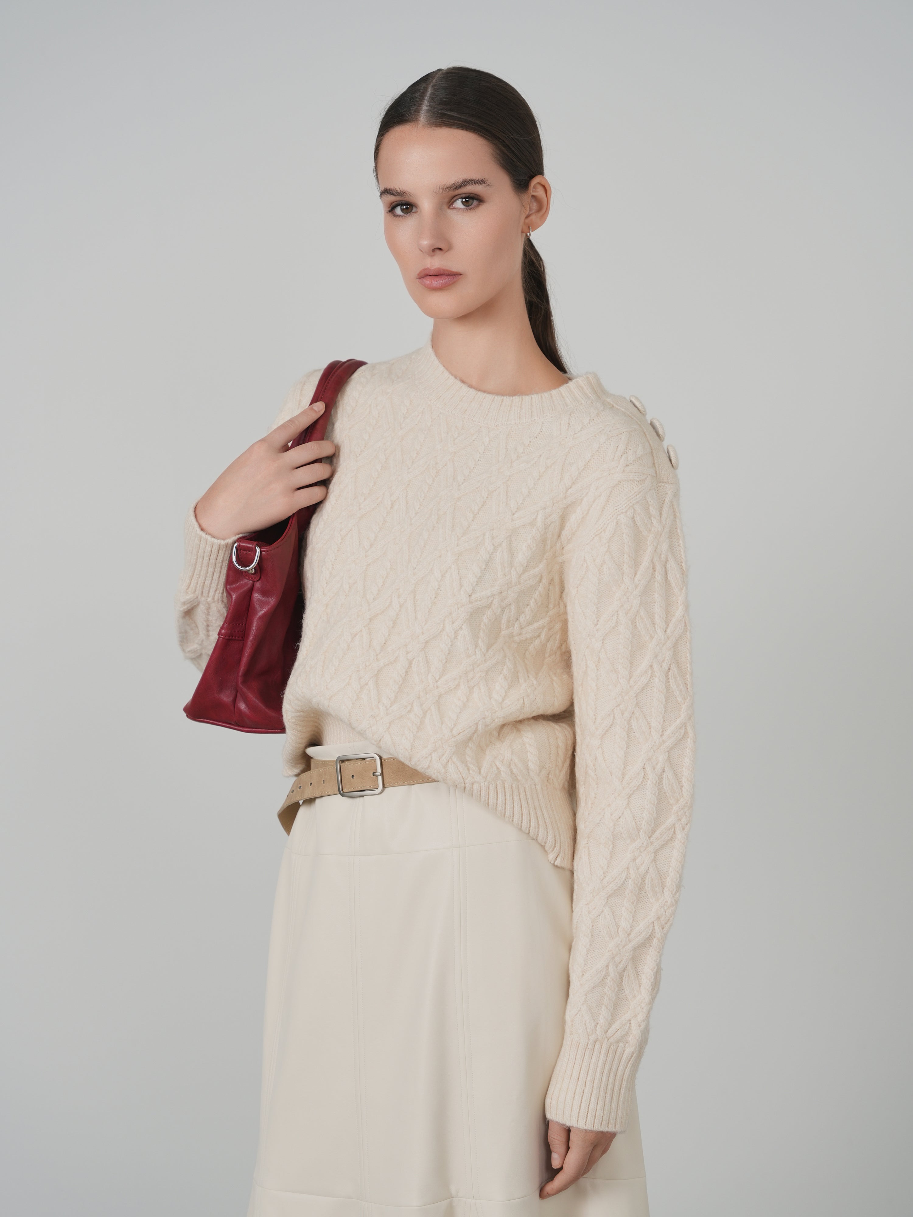 KM Diamond Cable Pullover Sweater