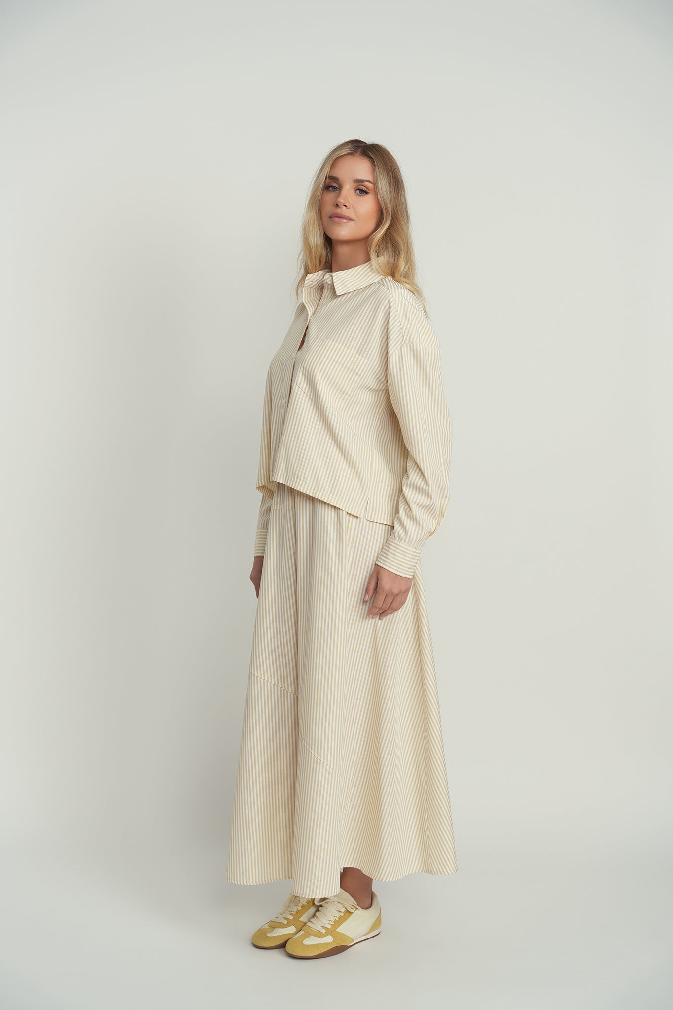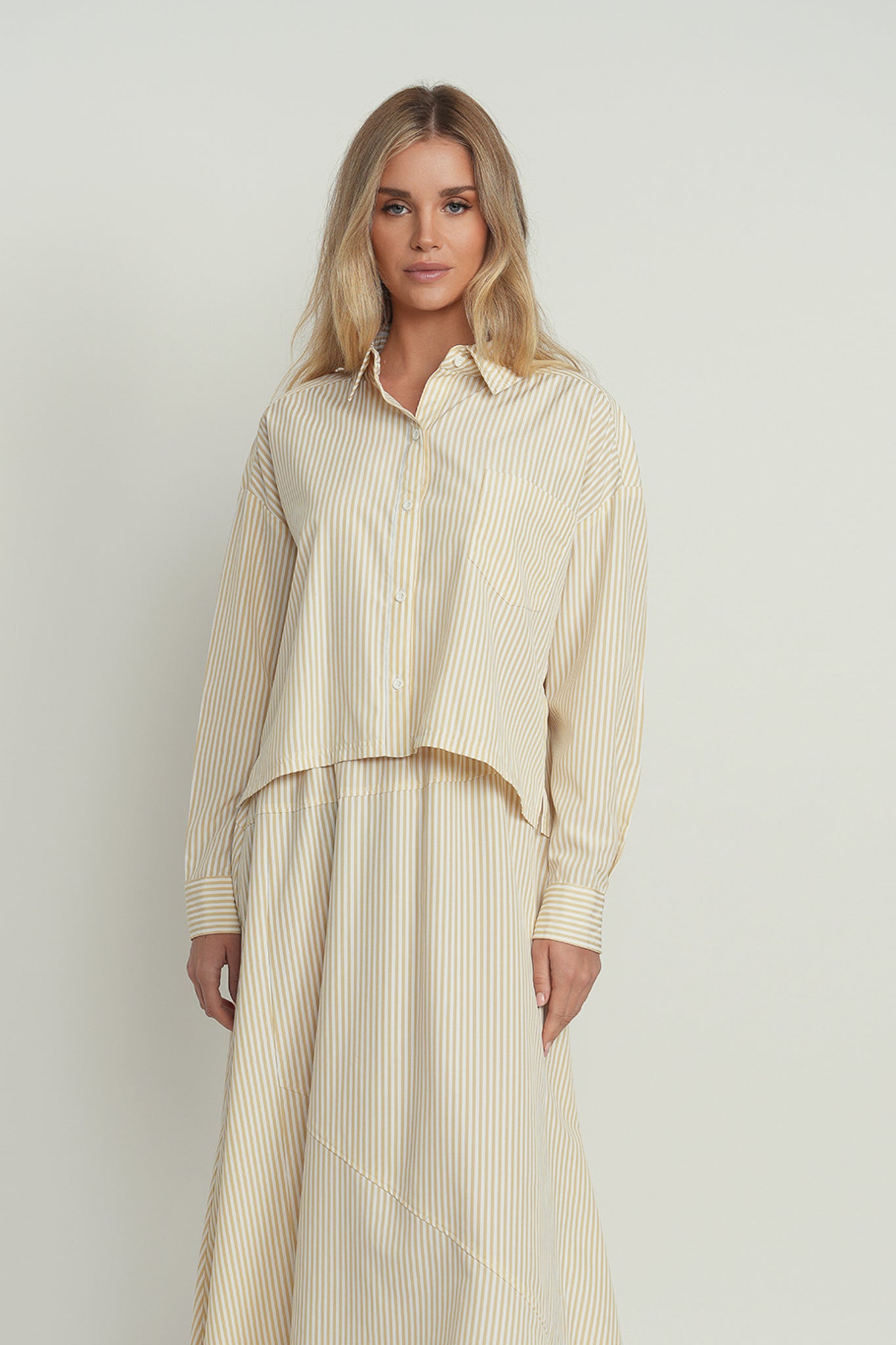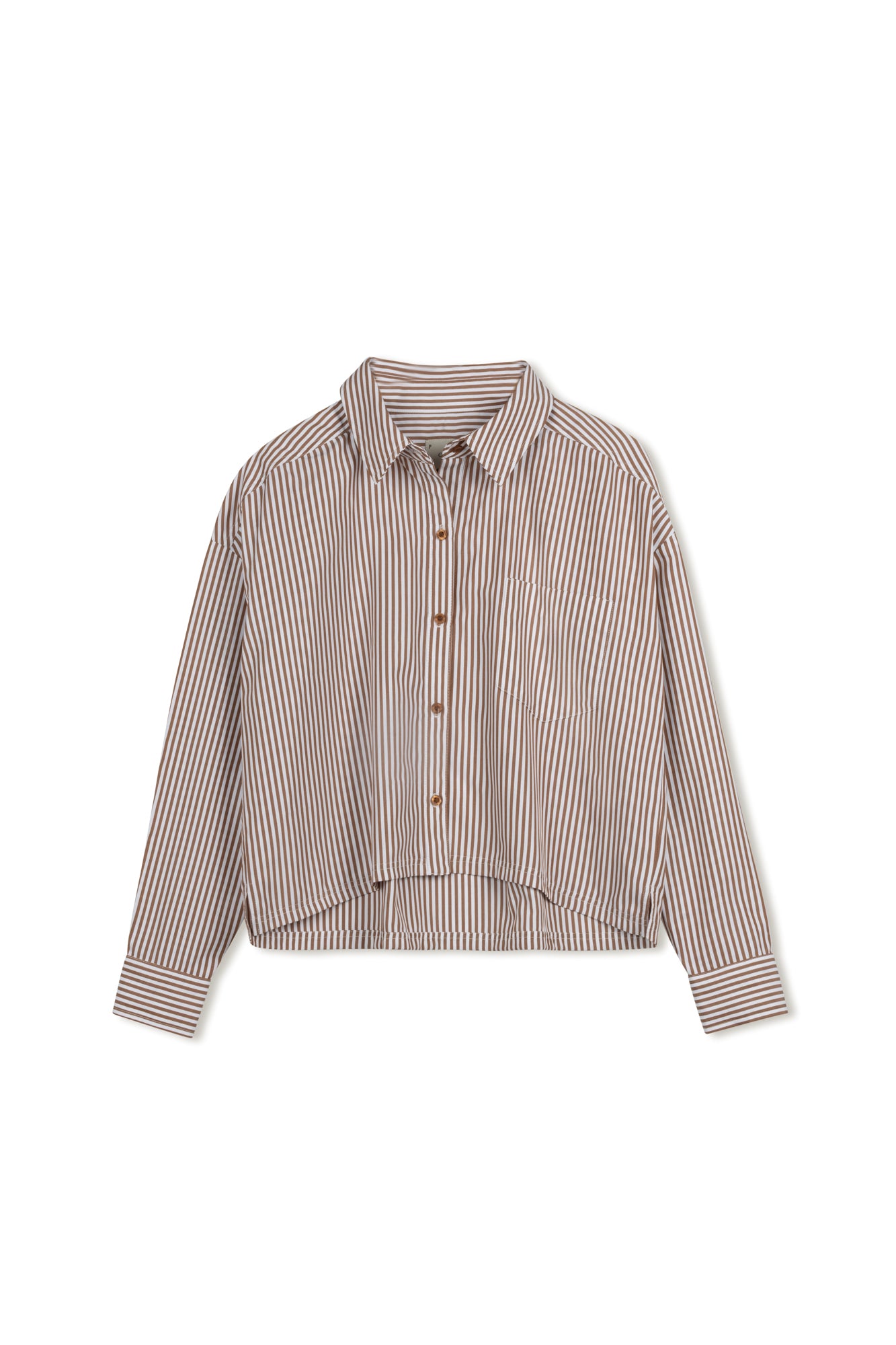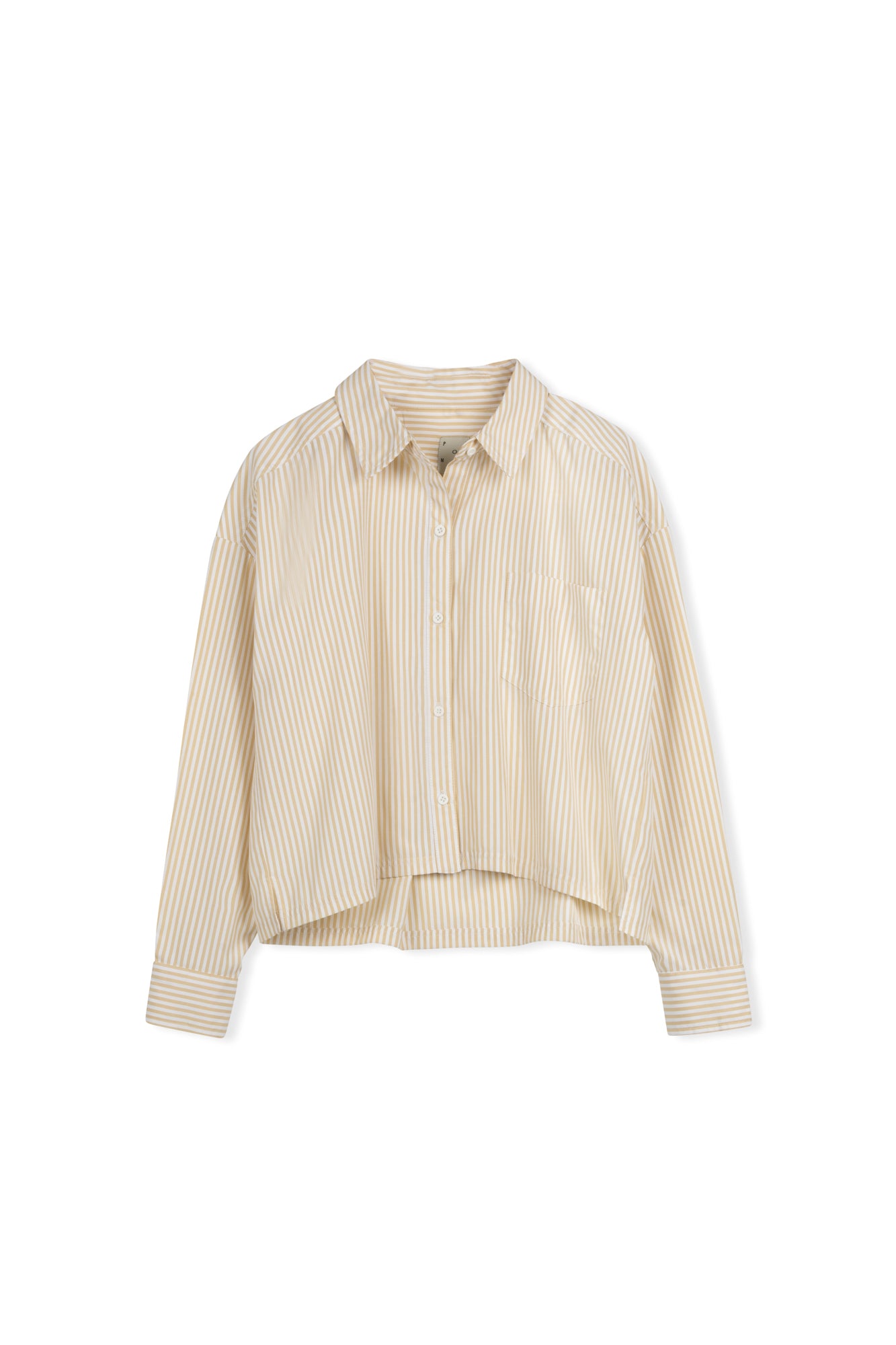 This striped shirt is made for weekdays—light, breathable and classic. Its easygoing fit and cropped hem keep you trendy and carefree, matching the tune of spring’s calming energy.