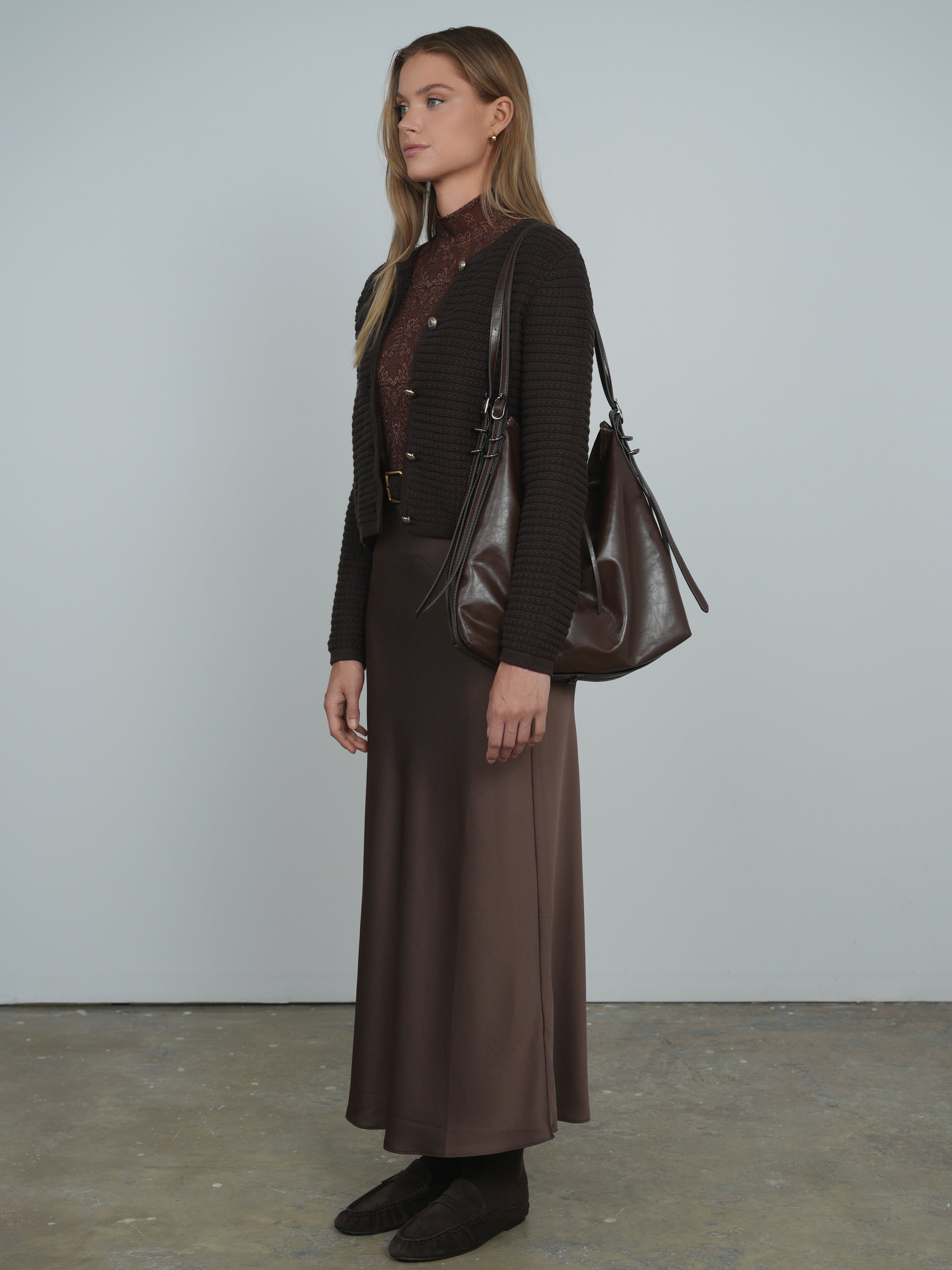 The Point A-line Slip Skirt combines sleek minimalism with a flattering silhouette, creating a must-have piece for a modern wardrobe. Its fluid fabric gently drapes over the body, emphasizing a clean A-line shape that moves gracefully with every step. Designed for effortless styling, this skirt works beautifully from casual daywear to polished evening looks, offering both comfort and sophistication in one elegant design.