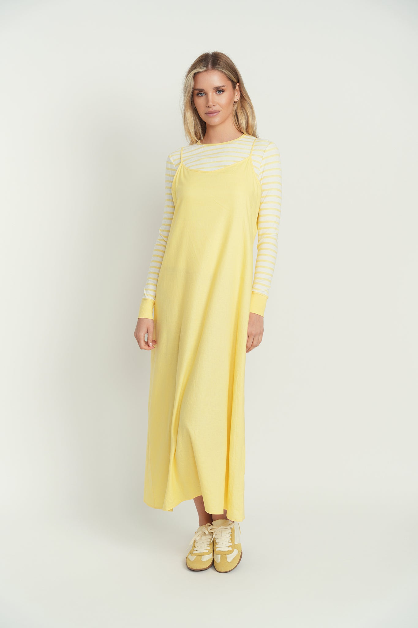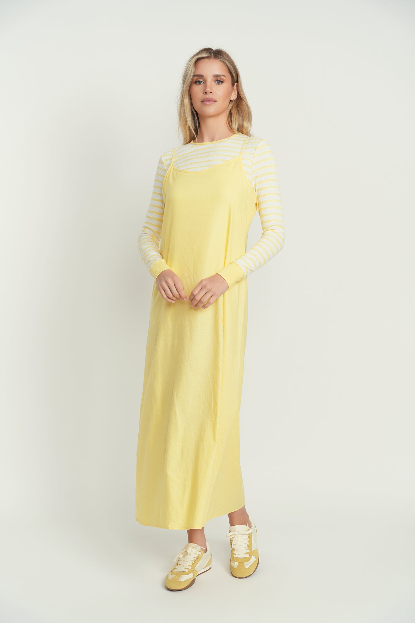 Greet the sun in this easy-breezy day dress. Made from pure linen, it offers breathability and comfort all season long. Its roomy hem allows for free movement, perfect for embracing life at your pace.