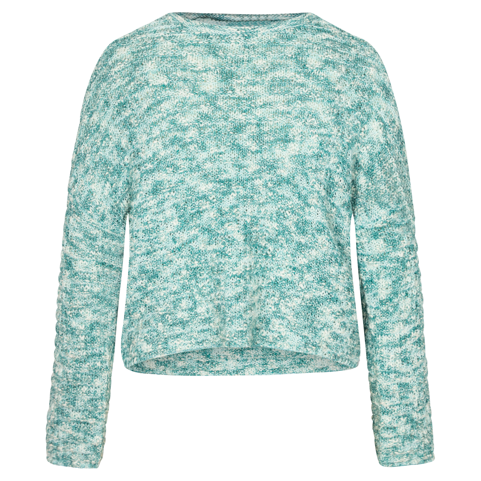With its blend of pastel blues and aqua, this melange sweater is inspired by the coastal lifestyle. Its soft, breathable knit drapes effortlessly, wrapping you in softness with every wear.